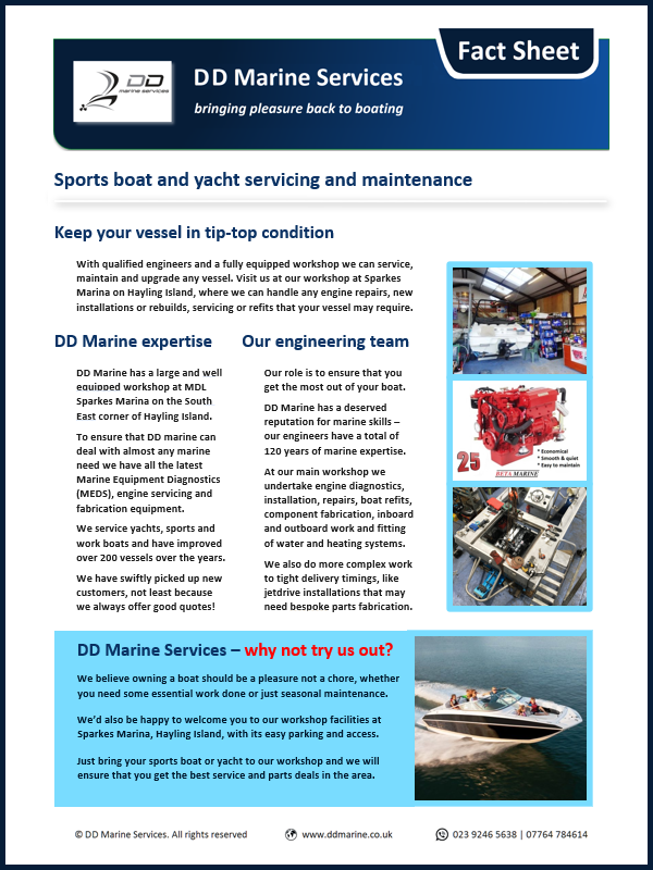 DD Marine workshop services fact sheet CLICK HERE TO DOWNLOAD Project navigationPreviousPrevious project:MDL Northney workboat repowerNextNext project:Beta Marine large & hybrid engines